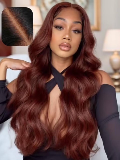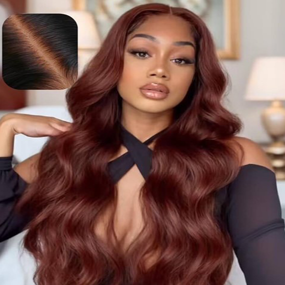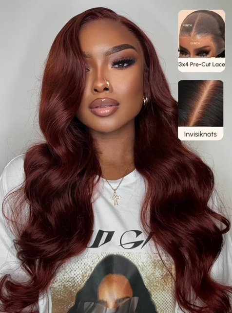 Glueless Pre Everything Frontal Wig Reddish Brown Body Wave 13×4 HD Pre Cut Lace Front Wig Human Hair Pre Bleached Invisible Bye Bye Knots Pre Plucked No Shedding no Tangle